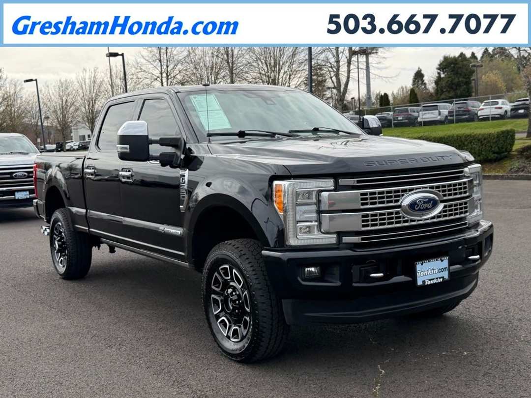 CARFAX reports this as a LOCAL TWO OWNERS with EXCELLENT maintenance!!! ULTIMATE PACKAGE! POWER PANORAMIC MOONROOF! HEATED & VENTILATED LEATHER SEATS W/ MASSAGE FRONT SEATS! FX4 OFFROAD PACKAGE! NAVIGATION! SONY PREMIUM SOUND! BLIND SPOT ALERT! BLUETOOTH! BACKUP CAMERA! SO MUCH MORE!10 Speakers, 110V/400W Outlet, 20" Polished Aluminum Wheels, 3.73 Axle Ratio, 4-Wheel Disc Brakes, ABS brakes, Adaptive Cruise Control & Collision Warning, Adjustable pedals, Air Conditioning, Alloy wheels, AM/FM radio: SiriusXM, Auto High-beam Headlights, Auto tilt-away steering wheel, Auto-dimming Rear-View mirror, Automatic temperature control, Brake assist, Bumpers: body-color, CD player, Compass, Delay-off headlights, Driver door bin, Driver vanity mirror, Dual front impact airbags, Dual front side impact airbags, Electronic Stability Control, Emergency communication system: SYNC 3 911 Assist, Exterior Parking Camera Rear, Flow-Through Console, Front anti-roll bar, Front Bucket Seats, Front Center Armrest, Front dual zone A/C, Front fog lights, Front reading lights, Fully automatic headlights, Garage door transmitter, Heated door mirrors, Heated front seats, Heated rear seats, Heated steering wheel, Illuminated entry, Lane-Keeping Alert, Leather steering wheel, Low tire pressure warning, Memory seat, Navigation System, Order Code 713A, Outside temperature display, Overhead airbag, Overhead console, Panic alarm, Passenger door bin, Passenger vanity mirror, Pedal memory, Platinum Ultimate Package, Power door mirrors, Power driver seat, Power passenger seat, Power steering, Power windows, Radio data system, Radio: Premium Sony Audio w/Single-CD/MP3 Player, Rain sensing wipers, Rear CHMSL Camera, Rear Parking Sensors, Rear reading lights, Rear seat center armrest, Rear step bumper, Rear window defroster, Remote keyless entry, Security system, SiriusXM Radio, Speed control, Speed-sensing steering, Split folding rear seat, Steering wheel memory, Steering wheel mounted A/C controls, Steering wheel mounted audio controls, SYNC 3 Communications & Entertainment System, Tachometer, Telescoping steering wheel, Tilt steering wheel, Traction control, Trip computer, Turn signal indicator mirrors, Twin Panel Power Moonroof, Ultimate Trailer Tow Camera System, Unique Platinum Leather 40/Console/40 Seats, Upfitter Switches (6), Variably intermittent wipers, Ventilated front seats, Wheels: 20" Polished Aluminum w/Diesel.Odometer is 29019 miles below market average!Reviews: * Turbodiesel V8 generates immense power and torque; stronger frame and suspension enable increased payload and tow ratings; aluminum body reduces overall weight and improves efficiency; spacious new cabs offer many convenience and technology options. Source: Edmunds* All of our vehicles are researched and priced regularly using LIVE MARKET PRICING TECHNOLOGY to ensure that you always receive the best overall market value. ASK US FOR THE VALUE REPORT ON THIS VEHICLE!* DA0090 All vehicles subject to prior sale, tax, license, title & registration processing fees ($115 dealer doc fee). While we make every effort to ensure display of accurate vehicle data, errors do occur and the vehicle description may not reflect all accurate vehicle items. Please verify vehicle information with a Tonkin sales representative by calling us at (503) 667-7077 or by visiting us at our Gresham dealership. Thanks for looking!!! Adam Johnson General Manager, Tonkin Gresham Honda.