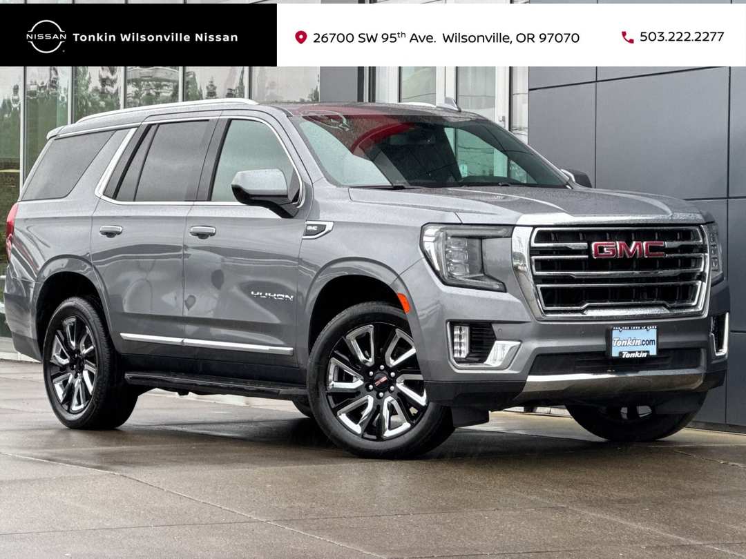 2021 GMC Yukon SLT Satin Steel Metallic EcoTec3 5.3L V8 16/20 City/Highway MPG 4WD, 12-Way Power Seat Adjusters, 2 Presets For Power Driver Seat, 3.23 Rear Axle Ratio, 3rd row seats: split-bench, 4-Wheel Disc Brakes, 9 Speakers, ABS brakes, Air Conditioning, Alloy wheels, AM/FM radio: SiriusXM with 360L, Apple CarPlay/Android Auto, Auto High-beam Headlights, Auto-dimming Rear-View mirror, Automatic Emergency Braking, Automatic temperature control, Bodyside moldings, Bose 9-Speaker Stereo Audio System Feature, Brake assist, Bright Chrome Bodyside Moldings, Bright Front & Rear Door Sill Plates, Bumpers: body-color, Cargo Convenience Package, Cargo Security Shade (LPO), Chrome Door Handles w/Body-Color Strip, Collapsible Cargo Area Organizer (LPO), Compass, Delay-off headlights, Driver door bin, Driver vanity mirror, Dual front impact airbags, Dual front side impact airbags, Dual-Pane Panoramic Power Sunroof, Electronic Stability Control, Emergency communication system: OnStar and GMC connected services capable, Following Distance Indicator, Forward Collision Alert, Four wheel independent suspension, Front & Rear Park Assist, Front anti-roll bar, Front Bucket Seats, Front Center Armrest, Front dual zone A/C, Front fog lights, Front Pedestrian Braking, Front reading lights, Fully automatic headlights, Garage door transmitter, Hands-Free Power Programmable Rear Liftgate, HD Radio, Heated & Ventilated Driver & Front Passenger Seats, Heated door mirrors, Heated Driver & Front Passenger Seats, Heated front seats, Illuminated entry, Inside Rear-View Auto-Dimming Mirror, IntelliBeam Automatic High Beam On/Off, Lane Change Alert w/Side Blind Zone Alert, Lane Keep Assist w/Lane Departure Warning, Leather steering wheel, License Plate Front Mounting Package, Low tire pressure warning, Memory seat, Occupant sensing airbag, Outside temperature display, Overhead airbag, Overhead console, Panic alarm, Passenger door bin, Passenger vanity mirror, Perforated Leather Seating Surfaces, Power door mirrors, Power driver seat, Power Liftgate, Power passenger seat, Power steering, Power windows, Preferred Equipment Group 4SA, Premium Smooth Ride Suspension, Radio: AM/FM/SiriusXM, Rain sensing wipers, Rear air conditioning, Rear anti-roll bar, Rear Cross Traffic Alert, Rear reading lights, Rear seat center armrest, Rear window defroster, Rear window wiper, Remote keyless entry, Roof rack: rails only, Safety Alert Seat, Security system, SiriusXM w/360L, Speed control, Speed-sensing steering, Split folding rear seat, Spoiler, Steering wheel mounted audio controls, Tachometer, Telescoping steering wheel, Tilt steering wheel, Traction control, Trip computer, Universal Home Remote, Variably intermittent wipers, Ventilated front seats, Vertical Cargo Net (LPO), Voltmeter, Wheels: 20" x 9" 6-Spoke Polished Aluminum, Wheels: 22" Black Gloss w/Chrome Inserts (LPO), Wheels: 22" x 9" Steel Interim (LPO), 4WD. Priced below KBB Fair Purchase Price! Odometer is 14848 miles below market average! Our Best Price Up Front, No Games or Gimmicks. Our advertised price is for a retail type purchase and may not be available for Fleet or Commercial use type purchase; please call us to confirm.