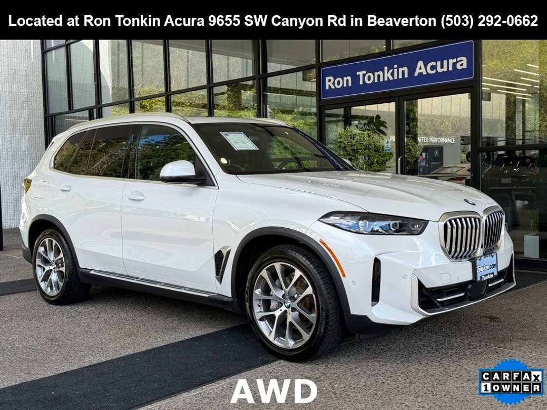 **VIP TEST DRIVE 503-292-0662** CARFAX One-Owner. Clean CARFAX. 2024 BMW X5 xDrive40i 4D Sport Utility 3.0L I6 DOHC 24V 8-Speed Automatic Sport AWD...CONTACT A SALES SPECIALIST FOR A VIDEO WALK AROUND @ 503-292-0662!!Black Premium Synthetic, 10 Speakers, 3.39 Axle Ratio, 4-Wheel Disc Brakes, 4-Zone Automatic Climate Control (DISC), ABS brakes, Active Park Distance Control, Adaptive Full LED Lights w/Cornering Lights, Air Conditioning, Alloy wheels, Aluminum Running Boards, AM/FM radio: SiriusXM with 360L, AM/FM Stereo, Apple CarPlay & Android Auto Compatibility, Apple CarPlay Compatibility, Auto High-beam Headlights, Auto tilt-away steering wheel, Auto-dimming door mirrors, Auto-dimming Rear-View mirror, Automatic temperature control, BMW Assist eCall, BMW TeleServices, Brake assist, Bumpers: body-color, Climate Comfort Package, Compass, Connected Package Pro, ConnectedDrive Services, Delay-off headlights, Driver door bin, Driver vanity mirror, Dual front impact airbags, Dual front side impact airbags, Electronic Stability Control, Emergency communication system: BMW Assist eCall, Exterior Parking Camera Rear, Four wheel independent suspension, Front & Rear Heated Seats, Front anti-roll bar, Front Bucket Seats, Front Center Armrest, Front dual zone A/C, Front reading lights, Front Ventilated Seats, Fully automatic headlights, Garage door transmitter, Genuine wood console insert, Genuine wood dashboard insert, Genuine wood door panel insert, Gesture Control, harman/kardon Surround Sound System, Head restraints memory, Heated door mirrors, Heated Front Seats, Heated front seats, Heated Front Seats, Armrests & Steering Wheel, Hi-Fi Sound System, Illuminated entry, Knee airbag, Leather Shift Knob, Leather steering wheel, Live Cockpit Pro, Low tire pressure warning, Lumbar Support, Memory seat, Multi-Contour Seats, Navigation, Navigation System, Occupant sensing airbag, Outside temperature display, Overhead airbag, Panic alarm, Parking Assistance Package, Parking Assistant Professional, Passenger door bin, Passenger vanity mirror, Personal eSIM 5G, Power adjustable front head restraints, Power door mirrors, Power driver seat, Power Front Seats, Power moonroof, Power passenger seat, Power steering, Power windows, Premium Package, Radio data system, Rain sensing wipers, Rear anti-roll bar, Rear reading lights, Rear seat center armrest, Rear window defroster, Rear window wiper, Remote Engine Start, Remote keyless entry, Security system, Sensafin Upholstery, SiriusXM w/360L, Speed control, Speed-sensing steering, Speed-Sensitive Wipers, Split folding rear seat, Spoiler, Sport Seats, Sport steering wheel, Steering wheel mounted audio controls, Surround View w/3D View, Tachometer, Telescoping steering wheel, Tilt steering wheel, Traction control, Trip computer, Turn signal indicator mirrors, Variably intermittent wipers, Wheels: 20" x 9" V-Spoke (Style 738), Wireless Device Charging, Black Premium Synthetic.https://www.rontonkinacura.com/inventory/used-2024-bmw-x5-xdrive40i-awd-4d-sport-utility-5ux23eu03r9v74266/Ron Tonkin Acura has proudly served the Pacific Northwest since 1986. Come work with one of our seasoned sales staff and experience our top notch service.