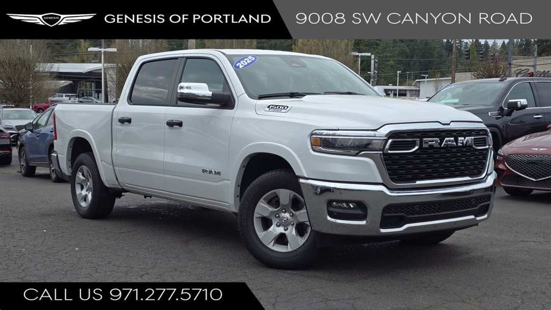 LEVEL1 EQUIPMENT GROUP *** 4X4 *** CREW CAB *** 2025 Ram 1500 Big Horn/Lone Star 4D Crew Cab 3.6L V6 24V VVT 8-Speed Automatic 4WD Bright White Clearcoat 115V Auxiliary Power Outlet, 2nd Row In Floor Storage Bins, 400W Inverter, Auto Power-Folding Mirrors, Auto-Dimming Exterior Driver Mirror, Auto-Dimming Rear-View Mirror, Big Horn Level 1 Equipment Group, Black Exterior Mirrors, Black Premium Power Mirrors, Convex Wide-Angle Exterior Mirror Insert, Exterior Mirrors Courtesy Lamps, Exterior Mirrors w/Heating Element, Exterior Mirrors w/Supplemental Signals, Glove Box Lamp, Heated Front Seats, Heated Steering Wheel, Leather Wrapped Steering Wheel, Power 2-Way Driver Lumbar Adjust, Power Adjust 8-Way Driver Seat, Power Adjustable Pedals, Rear Power Sliding Window, Rear Window Defroster, Steering Wheel Mounted Audio Controls, Sun Visors w/Illuminated Vanity Mirrors, Universal Garage Door Opener, 3 Rear Seat Head Restraints, 3.21 Rear Axle Ratio, 4 Way Front Headrests, 4-Wheel Disc Brakes, 4G LTE Wi-Fi Hot Spot, 6 Speakers, ABS brakes, Air Conditioning, Alloy wheels, AM/FM radio, Apple CarPlay/Android Auto, Auto High-beam Headlights, Big Horn Badge, Brake assist, Bumpers: chrome, Cloth Bench Seat, Compass, Connectivity - US/Canada, Delay-off headlights, Driver door bin, Dual front impact airbags, Dual front side impact airbags, Electronic Stability Control, Front anti-roll bar, Front Center Armrest w/Storage, Front fog lights, Front reading lights, Front Seat Back Map Pockets, Front wheel independent suspension, Fully automatic headlights, GPS Antenna Input, Heated door mirrors, Illuminated entry, Integrated Voice Command w/Bluetooth, Low tire pressure warning, Manual Folding Exterior Mirrors, Occupant sensing airbag, Outside temperature display, Overhead airbag, Overhead console, Panic alarm, ParkView Rear Back-Up Camera, Passenger door bin, Passenger vanity mirror, Power door mirrors, Power steering, Power windows, Quick Order Package 23Z Big Horn, Radio data system, Radio: Uconnect 5 W w/8.4" Display, RAM Grille Badge - Chrome, Rear 60/40 Folding Seat, Rear anti-roll bar, Rear seat center armrest, Rear step bumper, Remote keyless entry, Speed control, Split folding rear seat, Supplier Part Tracking (J-1), Tachometer, Telescoping steering wheel, Tilt steering wheel, Traction control, Trip computer, USB Host Flip, Variably intermittent wipers, Voltmeter, Wheels: 18" x 8" Cast-Aluminum Painted, 115V Auxiliary Power Outlet, 2nd Row In Floor Storage Bins, 400W Inverter, Auto Power-Folding Mirrors, Auto-Dimming Exterior Driver Mirror, Auto-Dimming Rear-View Mirror, Big Horn Level 1 Equipment Group, Black Exterior Mirrors, Black Premium Power Mirrors, Convex Wide-Angle Exterior Mirror Insert, Exterior Mirrors Courtesy Lamps, Exterior Mirrors w/Heating Element, Exterior Mirrors w/Supplemental Signals, Glove Box Lamp, Heated Front Seats, Heated Steering Wheel, Leather Wrapped Steering Wheel, Power 2-Way Driver Lumbar Adjust, Power Adjust 8-Way Driver Seat, Power Adjustable Pedals, Rear Power Sliding Window, Rear Window Defroster, Steering Wheel Mounted Audio Controls, Sun Visors w/Illuminated Vanity Mirrors, Universal Garage Door Opener.Genesis Of Portland. 2025 Ram 1500 Big Horn/Lone Star Conveniently located to Portland, Beaverton, Hillsboro, Aloha, Lake Oswego, Tigard, Tualatin, Milwaukie, Wilsonville, Clackamas, Gresham, West Slope, Raleigh Hills, Vancouver.